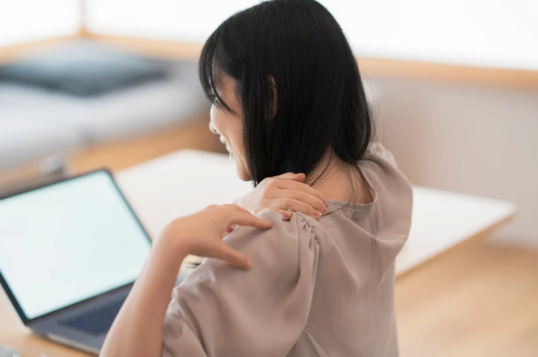長時間のデスクワークで凝り固まった肩や首は、肩を回す・首を前後左右にゆっくり倒すだけで血流が改善されます。