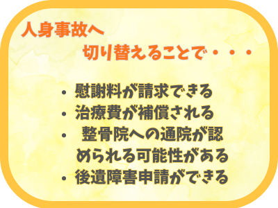 このようなときに重要になるのが、物損事故から人身事故への切り替えです。