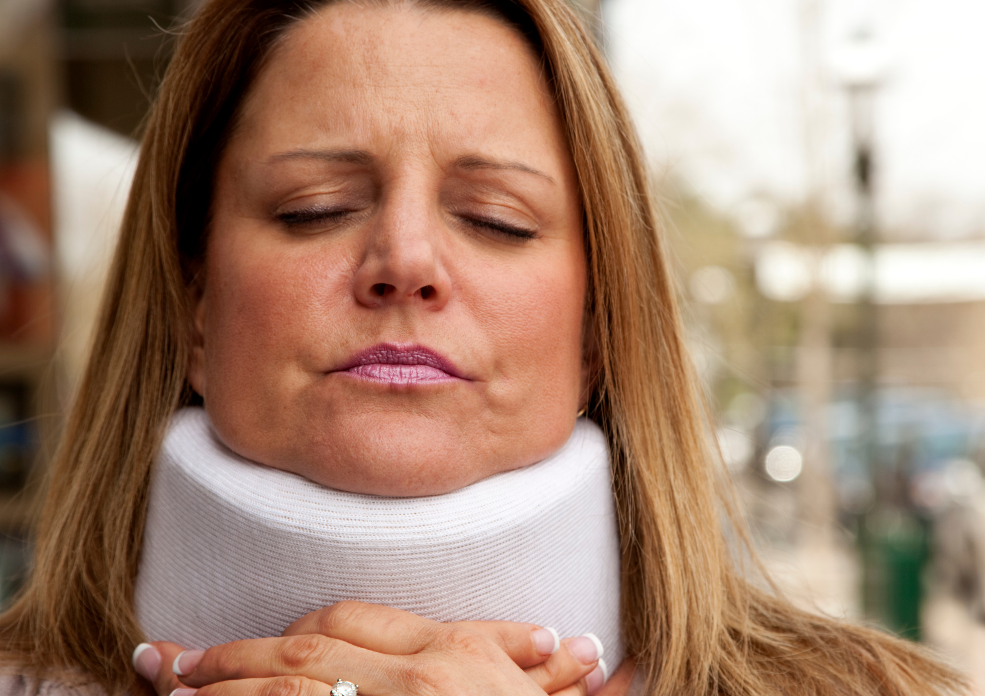 追突事故で多いのがむち打ち症です。レントゲンでは異常が出にくく、症状が軽視されがちです。